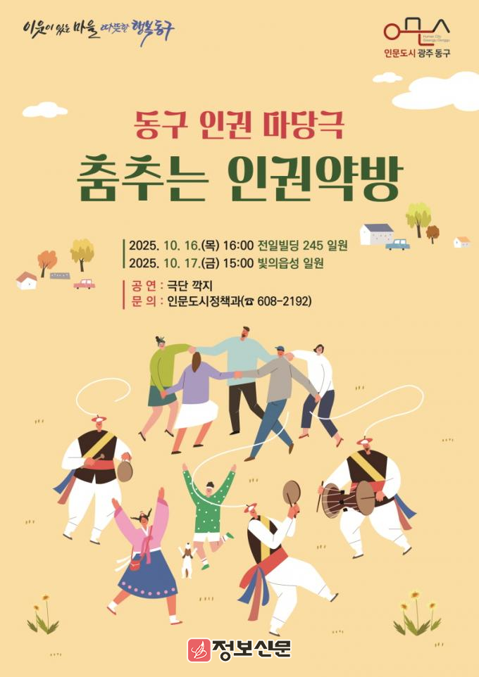 ![]() 광주시 동구, 인권마당극 ‘춤추는 인권약방’ 충장축제서 선보인다 |