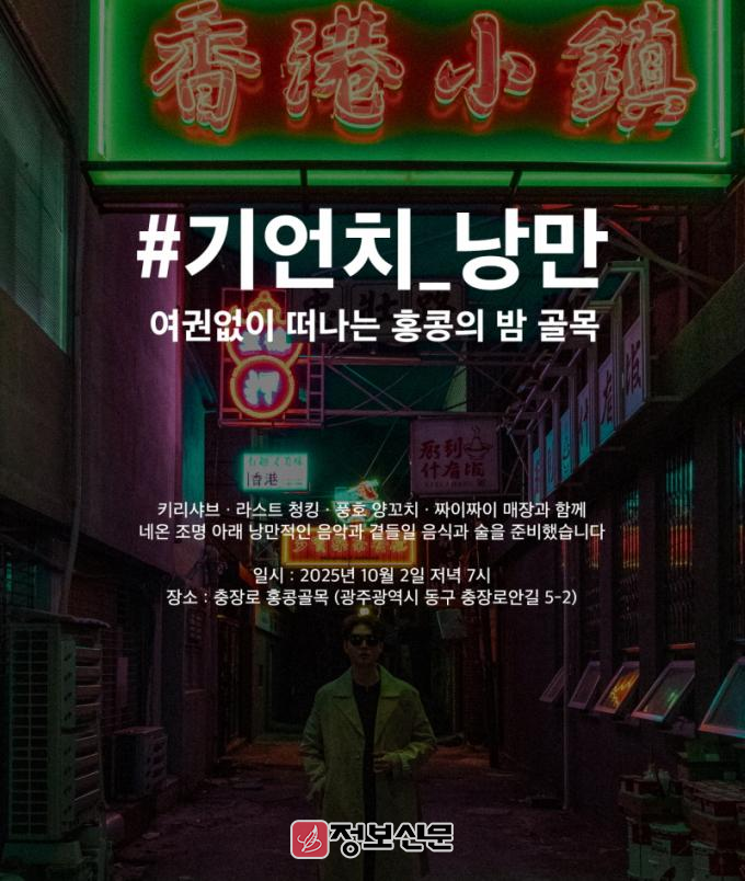 충장로안길 5-2 일원에서 진행되는 개장식 타이틀은 ‘기언치_낭만’으로 전라도 방언 ‘기언치(=기필코)’에서 착안했다. 여권과 비행기표가 없어도 충장로에서 홍콩의 낭만을 기필코 느낄 수 있다는 의미를 담아, 충장로 한복판에서 새로운 감성을 선사한다.
