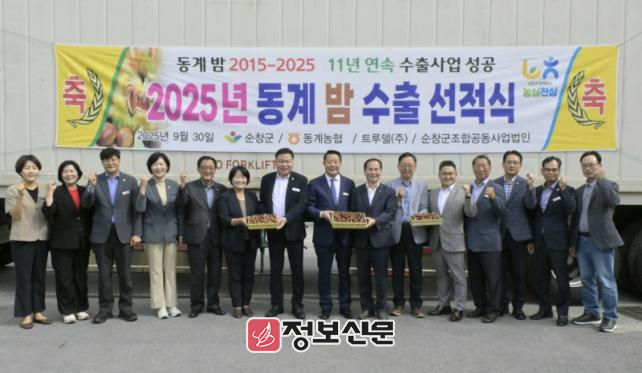 한편, 2025년 동계 밤 수출은 약 250톤, 6억 5,000만 원 규모에 이를 것으로 예상되며, 이번 선적을 계기로 지역 농가와 관계기관의 기대가 더욱 커지고 있다.