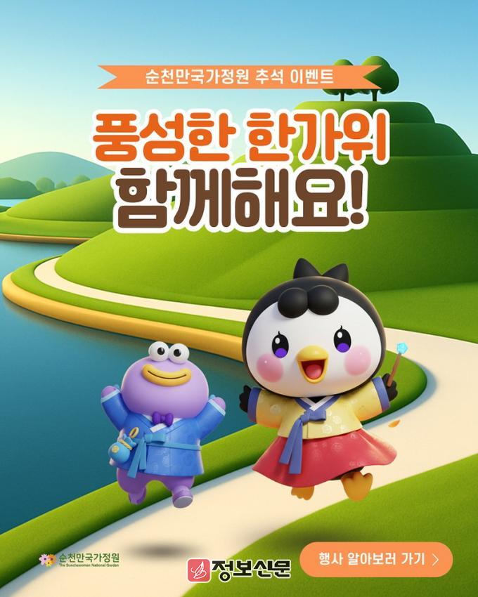 아이들을 위한 다채로운 체험이 정원 곳곳에서 열린다. 먼저 ‘시크릿 어드벤처’에서는 어린이를 위한 동화 프로그램이 준비되어 있다. 만화 속 캐릭터와 함께하는 추석 대소동이 펼쳐지고, 달토끼 포토존이 설치돼 아이들의 눈길을 사로잡는다. 또한 ‘식물원’에서는 한가위 보름달 앞에서 인생네컷을 찍을 수 있다. 순천만국가정원에서 준비한 선물로, 정원 관람객 누구나 추석 특별 프레임으로 인생네컷을 찍을 수 있다.