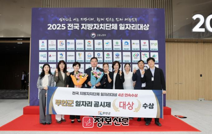 고용노동부가 주관하는 본 평가는 전국 243개 지자체의 전년도 일자리 정책 추진실적을 ▲일자리 목표 달성도 ▲지자체의 일자리 창출 의지 ▲지역 고용거버넌스 및 협력체계 구축 ▲우수시책 발굴·추진 등으로 종합 평가해 우수 지자체를 선정한다. 무안군은 2022·2023년 최우수상, 2024년 우수상에 이어 올해 대상을 수상하며 역대 최고 성과를 기록했다.