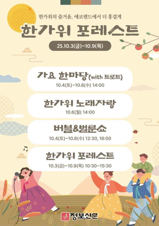 에코랜드는 추석 연휴 기간 낮에는 가족과 함께 한가위 축제를 즐기고, 밤에는 색다른 공포 체험을 할 수 있도록 다채로운 콘텐츠를 준비했다고 설명했다.