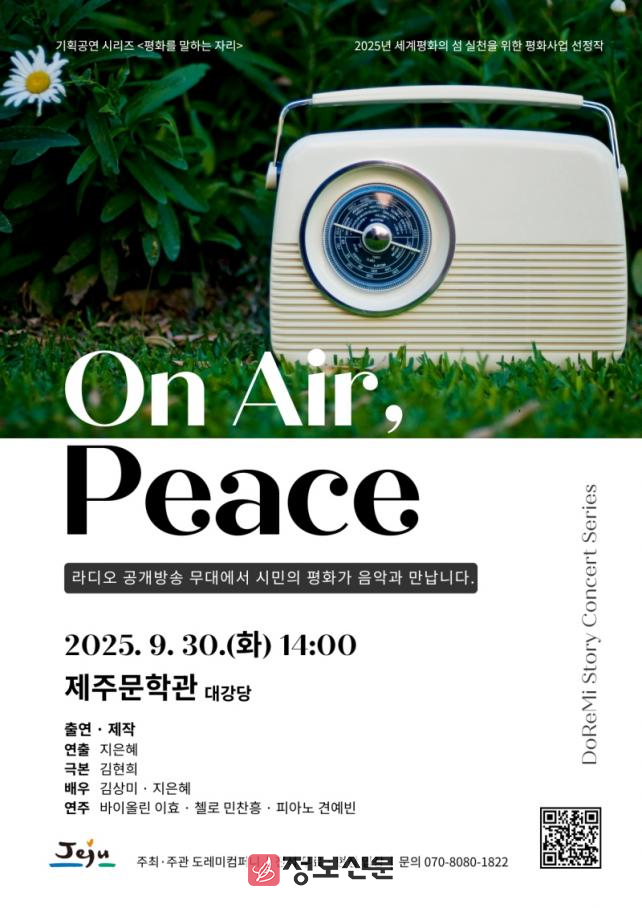 이번 공연은 ‘2025년 세계평화의 섬 실천사업’의 하나로, 제주특별자치도의 지원을 받아 기획된 문화예술 프로그램이다. 도민들이 직접 나눈 일상의 평화 이야기를 음악과 드라마로 엮어낸 음악극으로, 평화의 섬 제주가 지향하는 가치를 예술로 함께 나누는 특별한 무대로 마련된다.