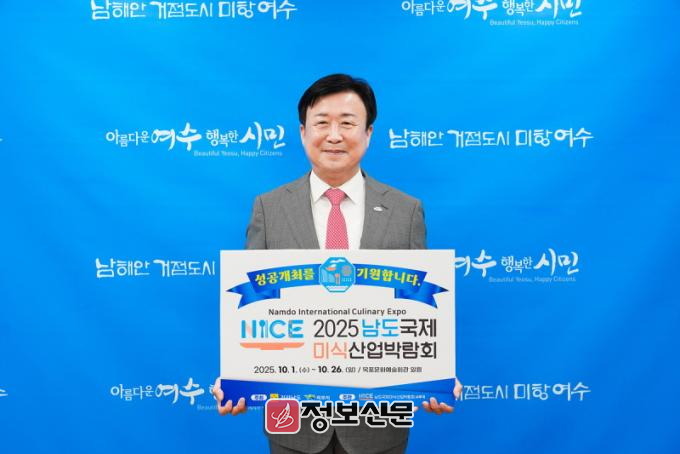 ![]() ▲ 정기명 여수시장이 2025 남도국제미식산업박람회의 성공 개최를 기원하며 릴레이 응원 챌린지에 참여했다.