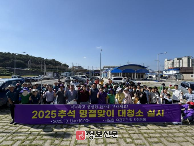 지도읍은 지난 1일, 유관기관과 사회단체, 주민, 학생 등 80여 명이 참여한 가운데 ‘추석맞이 대청소’를 실시했다. 이날 참여자들은 읍 소재지를 중심으로 주요 도로, 전통시장, 젓갈타운 일대 등 유동 인구가 많은 지역을 집중적으로 청소했다.