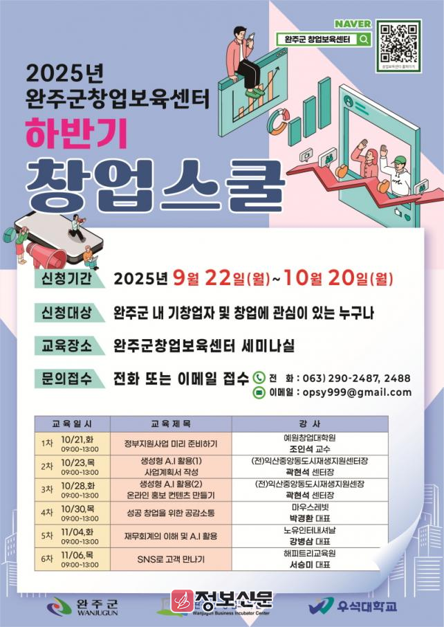 ![]() 완주군 창업보육센터, 창업스쿨 수강생 모집 |