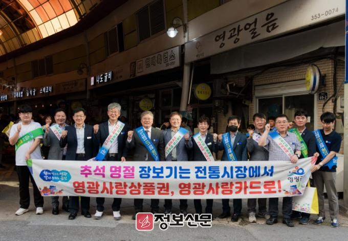 이번 행사에서는 영광군수, 국회의원, 도의원, 군의원, 공직자, 유관기관 등 300여 명이 참여해 영광사랑상품권으로 제수용품과 농·수산물 등을 구입하며 지역경제 살리기에 힘을 보탰다.