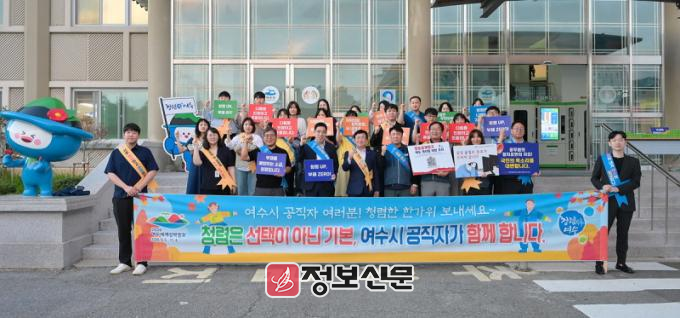 ![]() ▲ 여수시(시장 정기명)는 지난 1일 퇴근길 시청 본관 후문에서 추석 명절을 앞두고 ‘청렴한 데이’ 청렴 실천 캠페인을 진행했다.