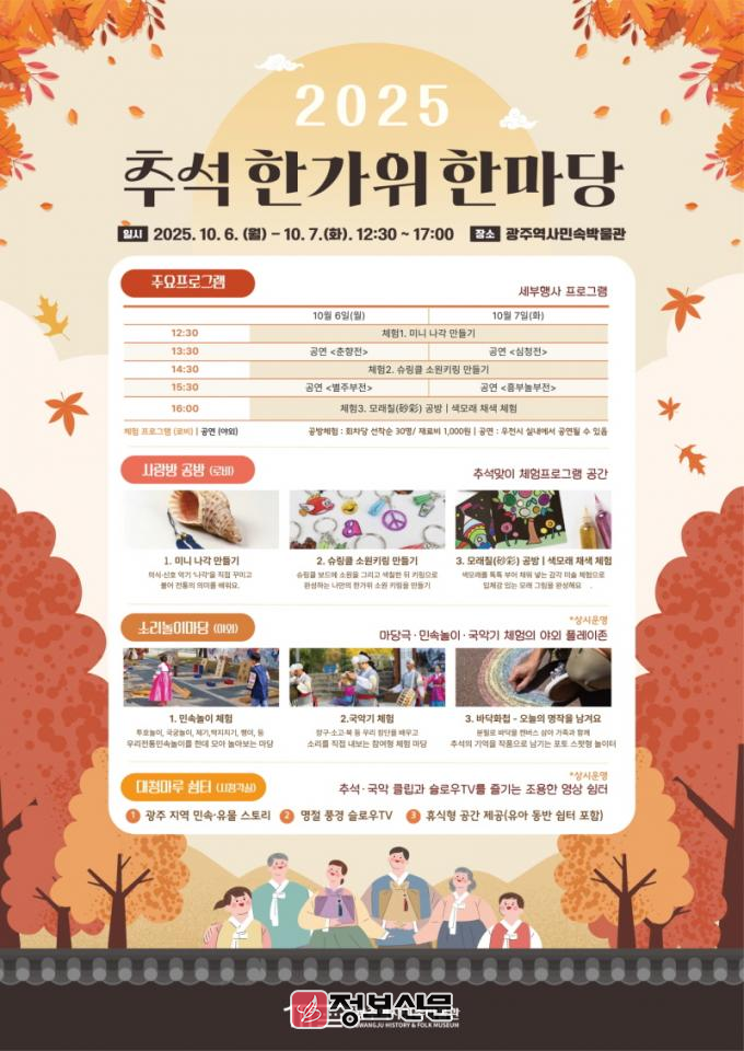 ![]() 광주역사민속박물관, 2025년 추석 한가위 한마당 개최 |