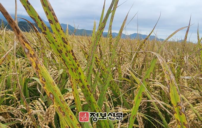 전남도 자체조사 결과 9월 말 현재 깨씨무늬병 발생 면적은 1만ha(잠정) 규모로 지난해 같은 기간보다 2.8배, 평년보다 2.3배 늘었다.