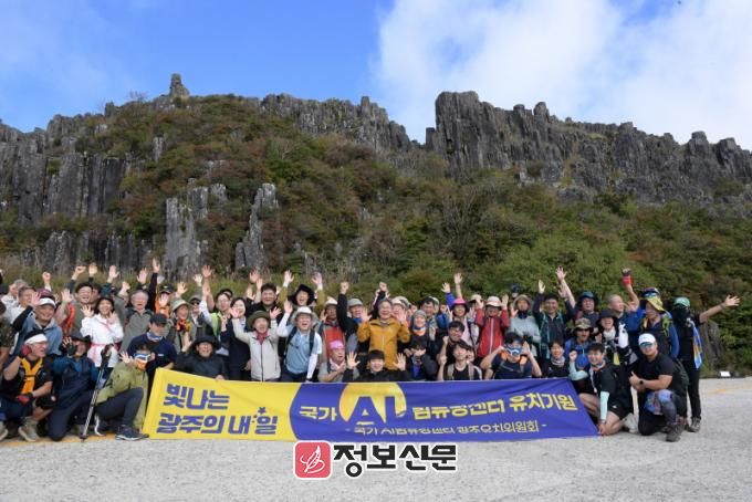 정상에 도착한 시민들은 저마다의 방식으로 특별한 순간을 기념했다. 특히 강기정 광주시장을 비롯한 100여 명의 시민들은 국가 AI 컴퓨팅센터 광주 유치를 한마음으로 염원했다.