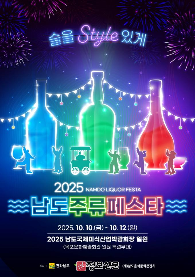 2025남도국제미식산업박람회 연계 행사로 개최되는 이번 주류 페스타는 ‘술을 Style 있게!’를 주제로 진행된다. 60여 종 전통주 시음·판매, 칵테일쇼, 유명가수 공연이 펼쳐진다. 체험 프로그램은 전통주 만들기, 남도주류 컬링, 남도주류 라이더 등이 다양하게 마련돼 축제장을 찾는 관람객들의 오감을 사로잡을 예정이다.