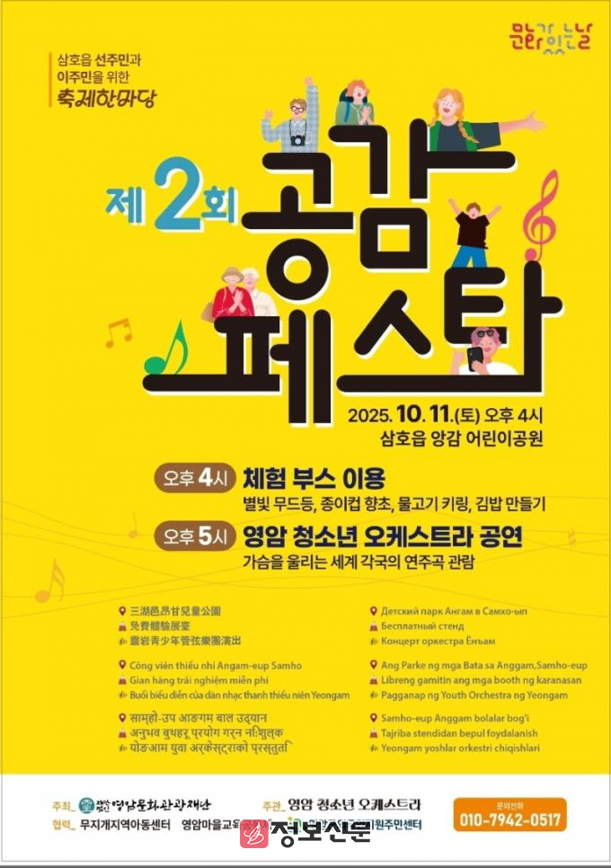 영암 청소년 오케스트라의 김성국 대표는 “이번 행사는 지역 주민과 다문화 가정이 함께 서로의 문화를 나누고, 영암 청소년들이 멋진 음악을 선사하는 특별한 자리”라고 전하며, “다양한 체험 부스와 감동적인 공연이 여러분을 기다리고 있으니, 많은 참여와 청소년들에 대한 관심을 부탁드립니다.”라고 강조했다.