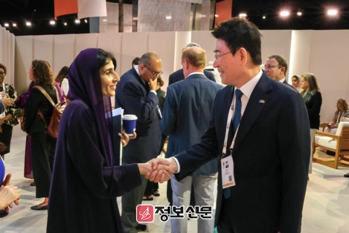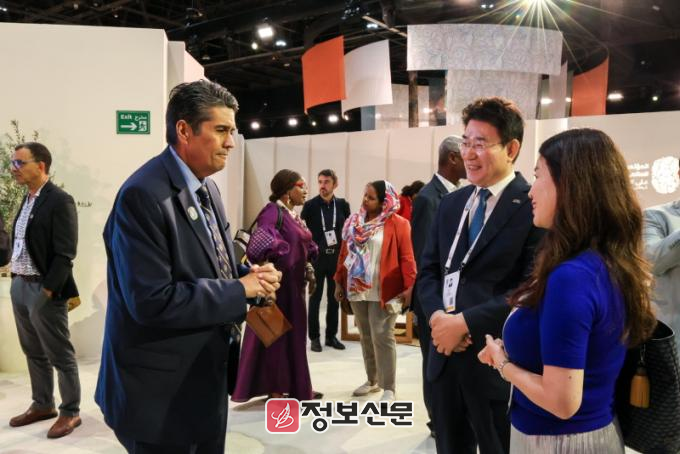 ![]() 지난 10일 노관규 순천시장이 아랍에미리트 아부다비에서 열린 세계자연보전총회(WCC)에 참석해 IUCN 라잔 칼리파 알 무라바크 회장과 소통하고 있다 |