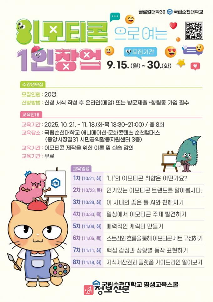 ![]() 국립순천대 평생교육스쿨, ‘이모티콘 만들기 특별교육과정’ 운영 |