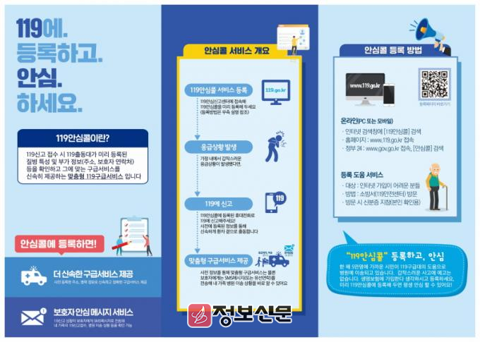 ‘119안심콜서비스’는 고령자, 장애인, 병력질환자 등 위급상황에 취약한 시민이 정보를 미리 등록해 119에 신고가 접수되는 즉시 구급대원이 해당 정보를 확인할 수 있는 제도다. 이를 통해 환자의 특이질환, 복용 약물, 보호자 연락처 등을 사전에 파악해 보다 안전하고 신속한 구급서비스를 제공받을 수 있다.