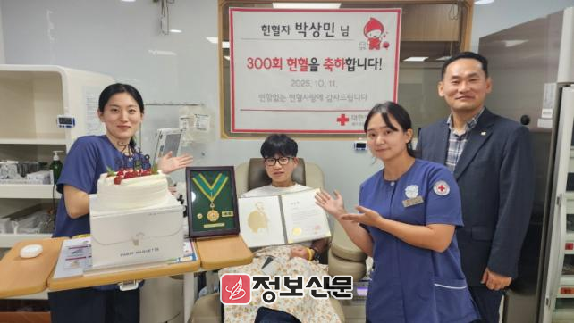 ![]() 대한적십자사 제주특별자치도혈액원, 박상민 헌혈자 300번째 헌혈 기념식 개최 |
