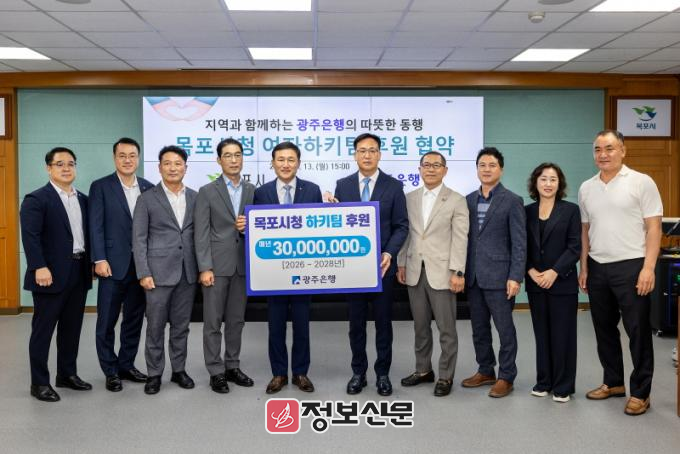 이번 협약을 통해 광주은행은 2026년부터 2028년까지 매년 3천만 원씩 총 9천만 원을 목포시청 여자하키팀에 지정 기탁하기로 했다.