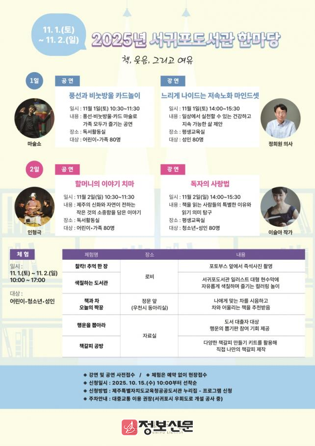 ![]() 서귀포도서관, 2025년 서귀포도서관 한마당 개최 |