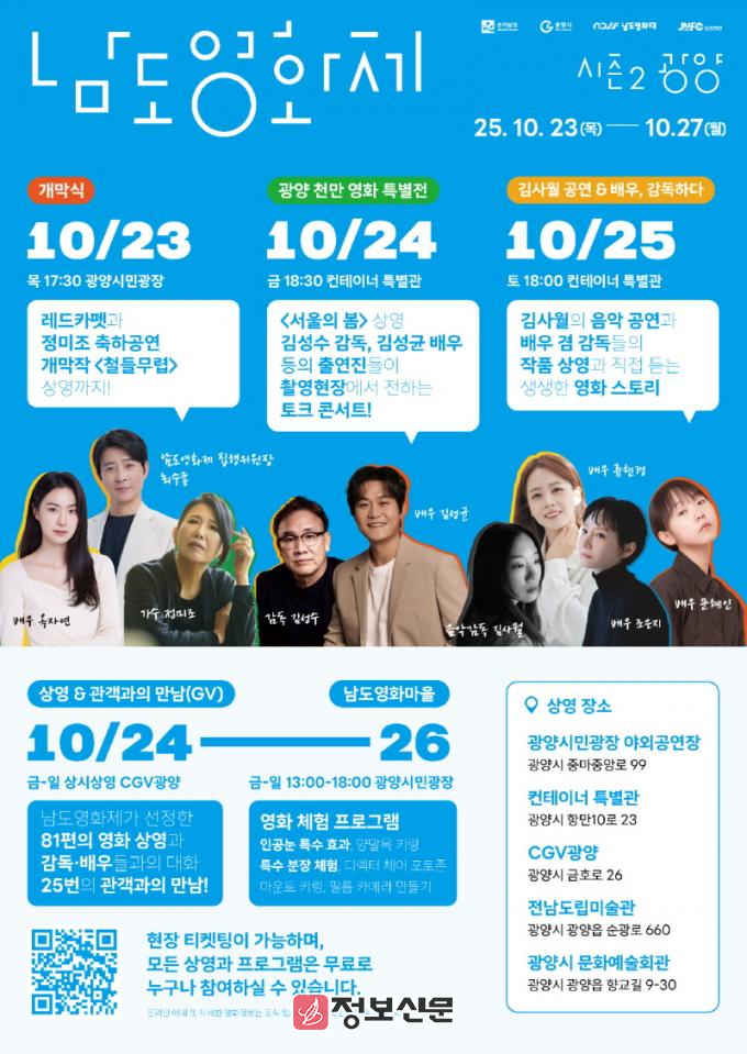 ![]() 광양시, D-9 [남도영화제 시즌2 광양] 온라인 티켓 예매 오픈 |