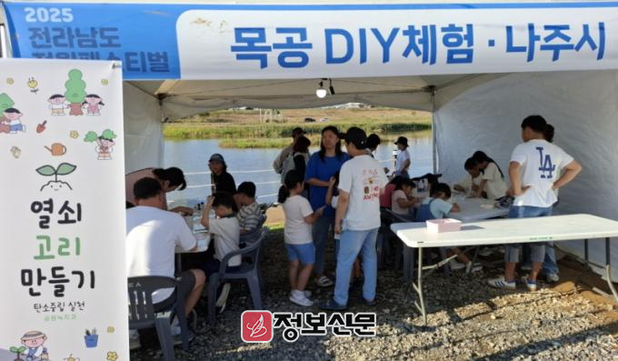 ![]() 나주시는 10월 8일부터 12일까지 5일간 ‘2025 전라남도 정원페스티벌 축제장’ 내에 목재 체험 부스를 운영해 3천여 명의 방문객에게 목재 DIY 체험 프로그램을 제공했다. (사진 제공-나주시) |