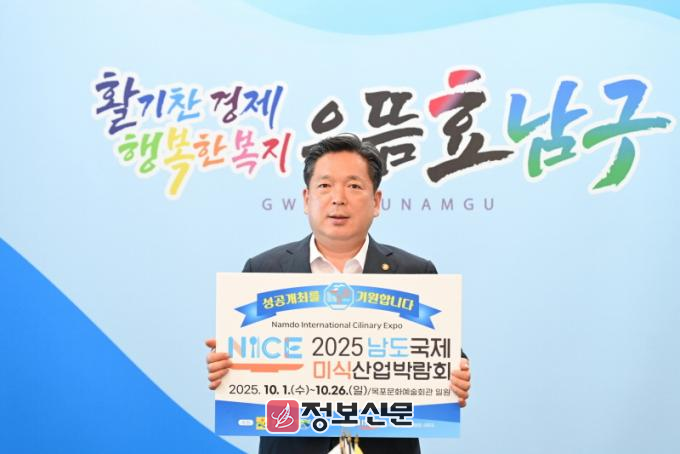 김병내 광주 남구청장은 10월 한달여간 목포에서 열리고 있는 ‘2025 남도국제미식산업박람회’의 성공 기원을 위한 인증 챌린지에 동참했다.
