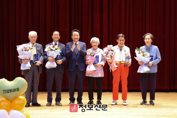 수상자는 백영철(89) 씨, 신현덕(83) 씨, 장금옥(92) 씨, 박병복(82) 씨, 정순주(93) 씨다. 93세의 최고령 수상자인 정순주 어르신은 문화센터 수영과 헬스 프로그램에 적극 참여하며 건강관리를 이어가고 있어 타의 귀감이 됐다.