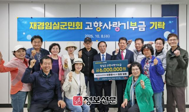 재경임실군민회 이종명 회장은“회원들이 한마음으로 뜻을 모아 마련한 이번 기부금이 군민의 복지 향상과 지역 발전에 조금이나마 보탬이 되길 바란다”며“앞으로도 고향사랑기부제에 지속적으로 참여하고, 고향 임실과 향우회원들이 더 자주 교류할 수 있도록 노력하겠다”고 전했다.