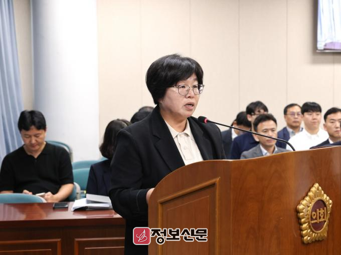 ![]() ▲ 전라남도의회 제394회 임시회 제1차 기획행정위원회 회의(15일)에서 오미화 의원이 조례 제안을 설명하고 있다.