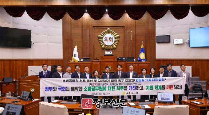나주시의회는 이번 건의안을 통해 ▲소방공무원의 정신건강 관리와 트라우마 치료를 국가 책임으로 제도화하고 지속적·체계적 지원체계를 마련할 것 ▲인력 확충, 근무환경 개선, 복지예산 안정화로 안전 근무 여건을 조성할 것 ▲공로 중심 보상·승진체계를 확립해 헌신과 공로가 정당히 평가받는 인사체계를 마련할 것 ▲각 지자체 의용소방대의 전문성을 지역사회 지원과 재난 대응에 합리적으로 활용할 수 있는 지원체계를 마련할 것을 촉구했다.