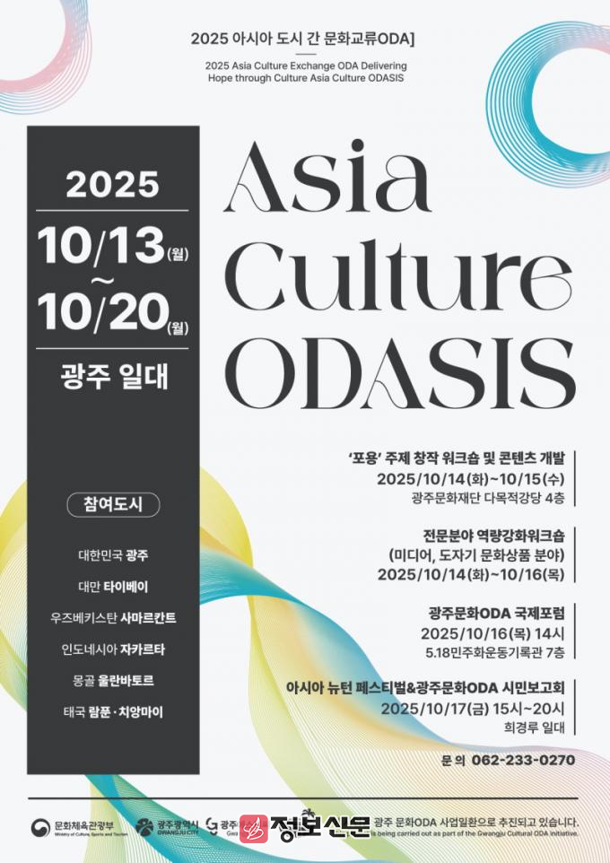 ‘광주형 문화 공적개발원조(ODA)-아시아 컬쳐 오다시스(Asia Culture ODASIS)’는 광주를 중심으로 ▲몽골 울란바토르 ▲인도네시아 자카르타 ▲태국 람푼·치앙마이 ▲우즈베키스탄 사마르칸트 ▲대만 창화 등 아시아 6개국 7개 도시의 청년예술가 70여 명이 참여하는 국제 문화예술 협력사업이다. 이들은 도시재생, 지역 특화 문화상품 개발, 미디어아트 등 다양한 협업프로젝트를 추진했다.