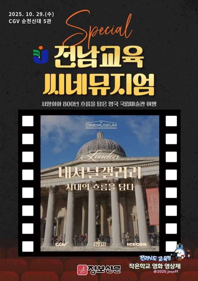 이 프로그램은 CJ CGV ICECON의 ‘씨네뮤지엄’을 전남교육청 맞춤형 인문학 교육 콘텐츠로 재구성한 것으로, ‘내셔널 갤러리, 시대의 흐름을 담다’라는 주제 아래 유럽 미술의 역사와 예술가들의 삶, 문화적 배경을 인문학적 시각으로 조명한다.