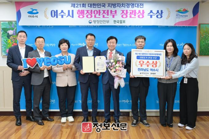 ![]() ▲ 여수시(시장 정기명)가 행정안전부와 한국일보가 공동으로 주최한 ‘제21회 대한민국 지방자치경영대전’에서 ‘지방물가 안정 분야’ 우수기관으로 선정돼 행정안전부장관 표창을 수상했다. |