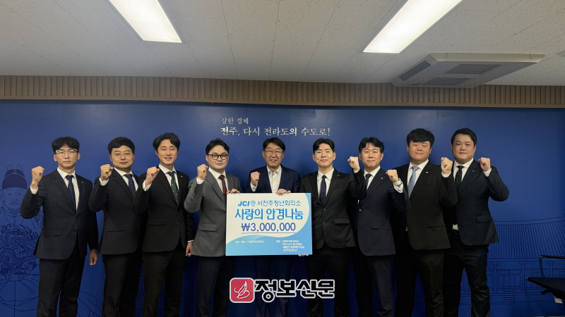이현열 서전주청년회의소 회장은 “경제적으로 어려운 시기에 이번 기부를 통해 지역사회에 희망이 전달되고, 아동·청소년들이 밝은 눈과 마음으로 사회를 바라볼 수 있었으면 한다”면서 “앞으로도 지역사회를 위한 다양한 나눔과 봉사를 지속적으로 이어나가겠다”고 밝혔다.
