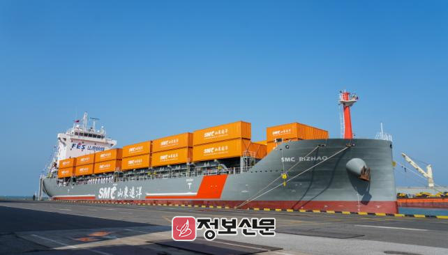 첫 취항 선박은 ‘SMC 르자오’호로, 2023년 12월 인도된 산둥항만장비그룹이 맞춤 제작한 컨테이너선이다.