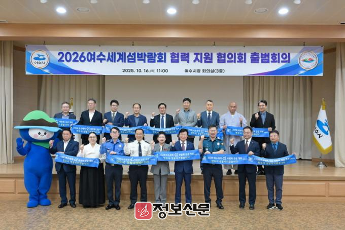 ![]() ▲ 여수시(시장 정기명)는 지난 16일 시청 3층 회의실에서 2026여수세계섬박람회의 성공개최를 위한 협력 지원 협의회(이하 협의회) 출범회의를 열었다. |