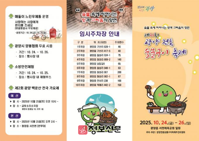 ![]() 광양시, 숯불 향 가득한 가을 미식 축제 제21회 광양전통숯불구이축제 24일 개막 |