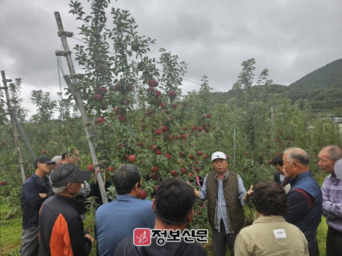 참석자들은 청송 지역의 선도 농장 2개소를 방문해 다축 재배 초기 과원 조성과 토양 관리, 수세 조절, 병해충 방제 기술 등을 집중적으로 학습했다.