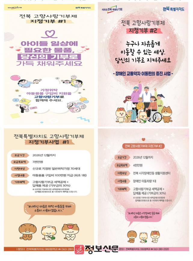 ![]() 전북특별자치도, 고향사랑기부 첫 지정기부사업 발굴 ‘따뜻한 변화’시동 |