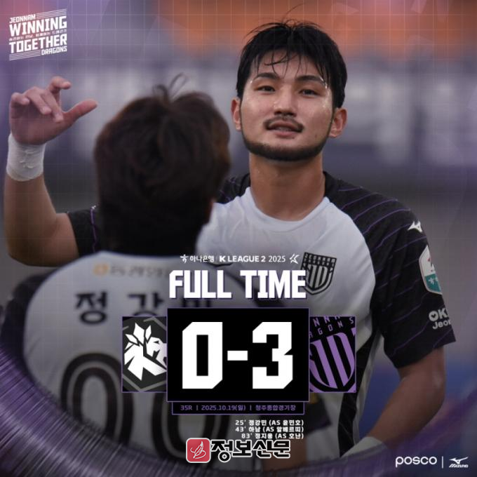 ![]() 전남드래곤즈, 35R 충북청주 원정서 0-3 승리 |