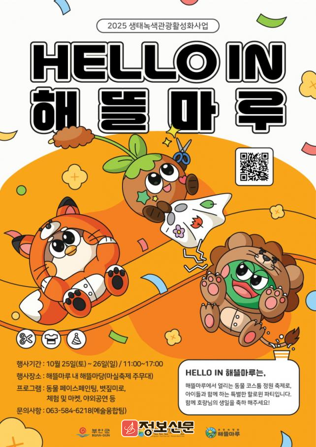 ![]() 부안군문화재단, 동물 코스튬 정원축제‘헬로우 인 해뜰마루 개최 |