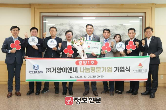 우광일 ㈜거양이앤씨 대표이사는 “이번 나눔명문기업 가입을 통해 기업의 사회적 책임을 실천하고, 지역경제 발전과 더불어 어려운 이웃을 위한 꾸준한 나눔을 이어가겠다”며, “지역사회 복지 향상과 나눔문화 확산에 앞장서겠다”고 밝혔다.