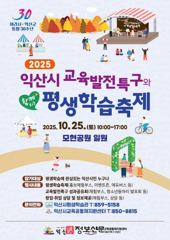 익산시는 오는 25일 오전 10시부터 오후 5시까지 모현공원 일원에서 '2025 익산시 교육발전특구와 함께하는 평생학습축제'를 개최한다고 21일 밝혔다.