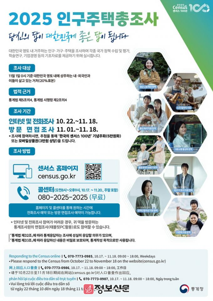 ![]() 보성군, 10월 22일부터 ‘2025 인구주택총조사’ 실시 |