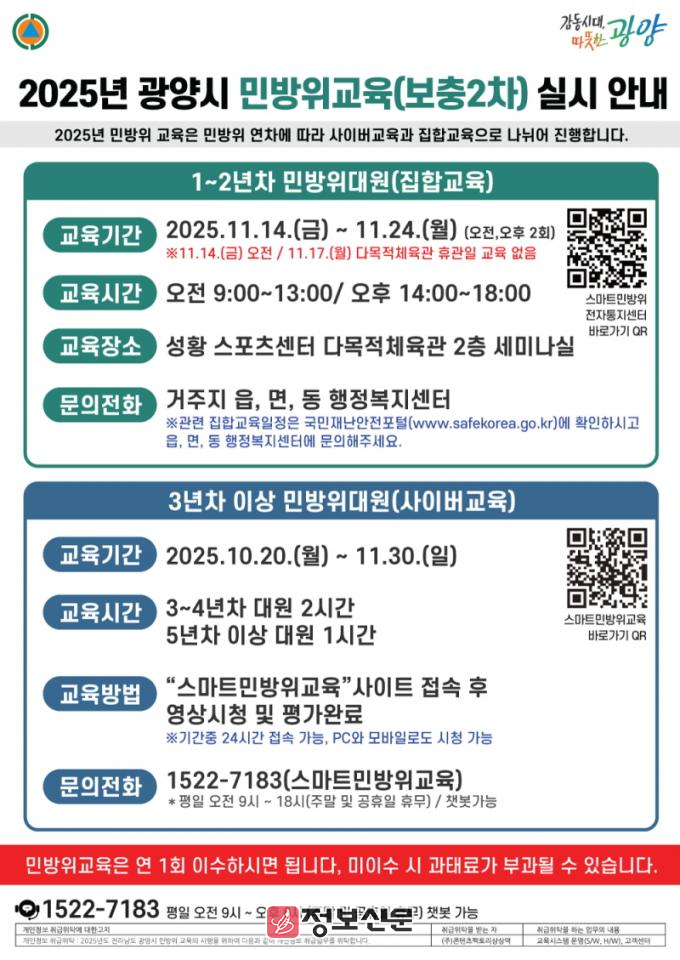 ![]() 광양시, 2025년 민방위 보충 2차 교육 실시 |