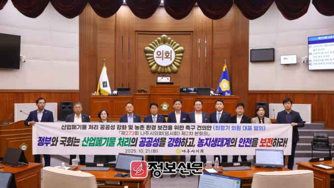 ![]() 나주시의회, 산업폐기물 문제 해결을 위한 근본 대책 마련 촉구 건의안 채택 |