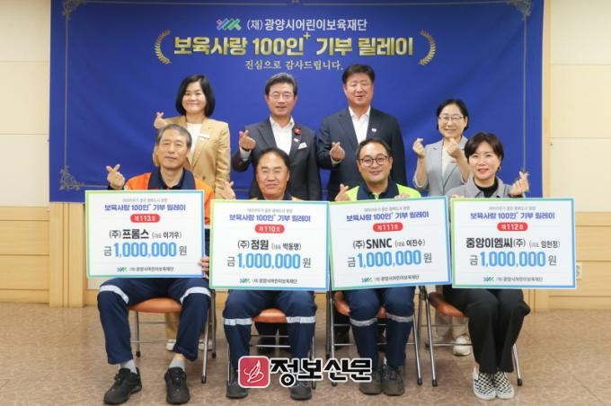 박동명 ㈜정원 대표는 “뜻깊은 자리에 함께해 기쁘다. 우리 회사는 지역사회와 함께 성장해 온 기업으로, 작은 보탬이 되고자 기탁에 참여했다. 오늘의 나눔이 광양의 미래를 책임질 아이들의 밝은 내일로 이어지길 바란다”고 말했다.