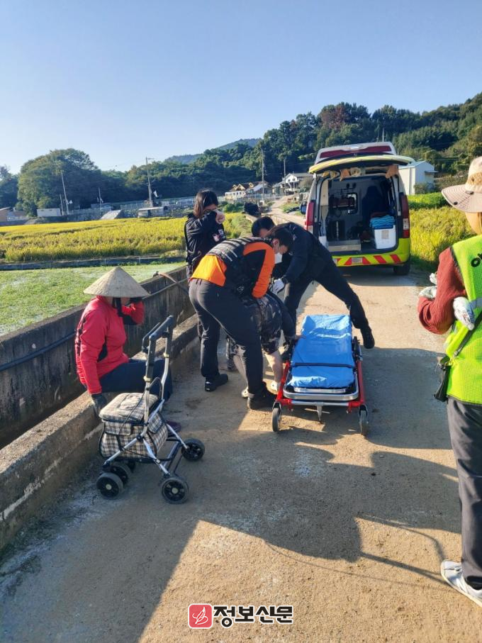 25. 10. 20.(월) 15:30경 순천만길 950. 인안초등학교 주변 근무 중 마을 앞 농로에서 고령자용 보행보조기를 밀고 운동 중 실신한 마을 주민 이00(여, 79세)을 발견하고, 신속히 119 신고 후 요구조자 안정조치 후 119로 성가롤로 병원 후송 조치하여 소중한 생명을 구하였다.