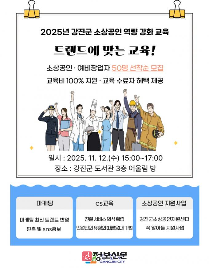 ![]() 강진군, 소상공인 매출 증대를 위한 교육생 모집 |