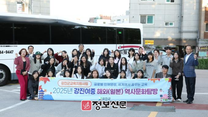 올해는 강진군 관내 10개 중학교 중2학생 260여명이 해외 탐방길에 올라 일본, 대만, 중국을 다녀왔다. 지난 5월 강진중학교를 시작으로 학교별 탐방이 추진됐다. 이번 강진여중 학생들의 일본 탐방을 마지막으로, 2025년 사업은 마무리한다.